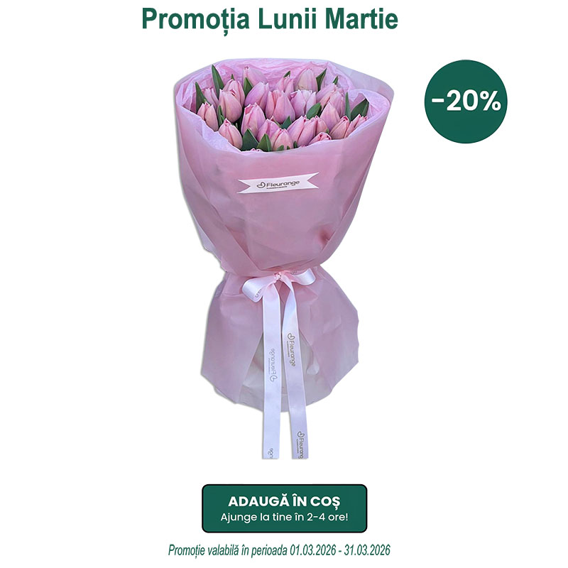 Buchete de trandafiri — rosii, albi, roz, galbeni si mixti, de la 17 la 101 fire, pentru orice ocazie si orice persoana. Buchete de bujori — parfumate si voluminoase, disponibile primavara si vara. Buchete de lalele — colorate si proaspete, vedetele primaverii. Buchete de hortensii, frezii si lisianthus — pentru cei care vor ceva deosebit. Buchete mixte de sezon — compuse din cele mai proaspete flori ale saptamanii.
