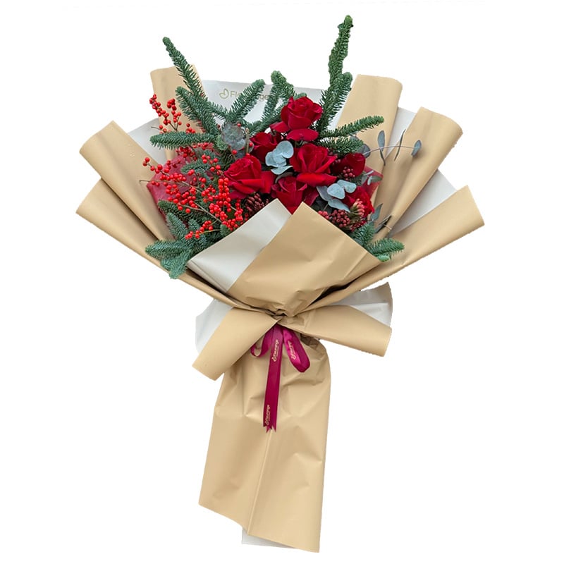 Cei care cauta flori online Baia Mare sau livrare flori Baia Mare aleg des acest model in decembrie, mai ales cand vor ceva care arata clar „e iarna”, dar fara sa fie incarcat. De obicei folosim trandafiri rosii, cateva ramuri de ilex, putin eucalipt si verdeata mai densa ca sa tina forma. Daca buchetul este pentru un decor de birou sau pentru o masa, facem compozitia mai compacta. Pentru cadou, il lasam putin mai aerisit, sa se vada craciunita.